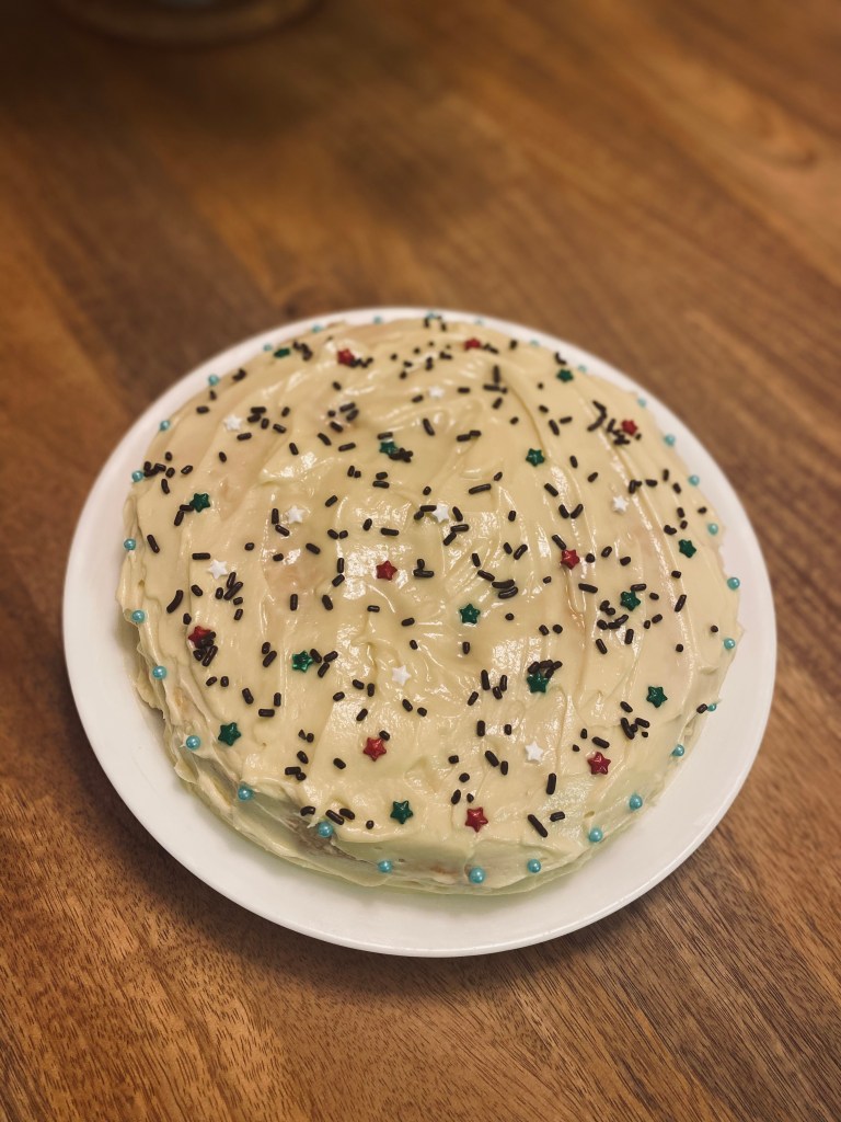 Yield: 3 tiered cake, it’s large, but this cake will disappear in no time. If you want a smaller yield, then use half of all the ingredients below